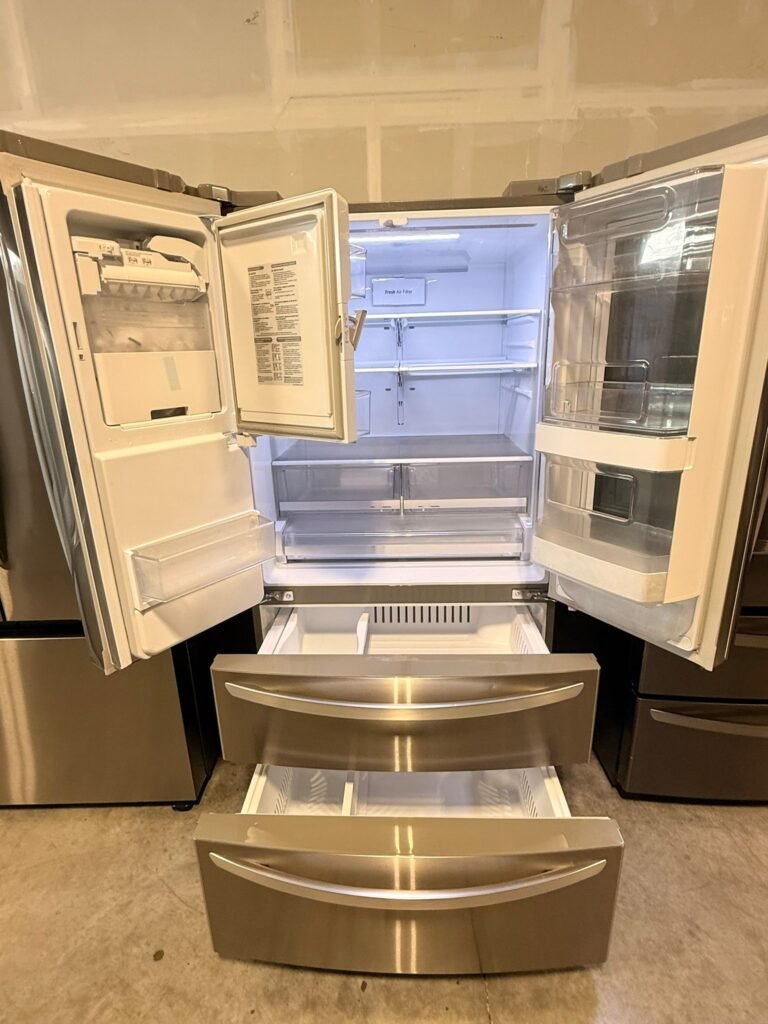 Specifications Manufactured: May 2022 Excellent condition Internal ice maker Total capacity: 25 cu. ft. A 6-month warranty included Dimensions: 33" (W) x 35.4" (D with...
