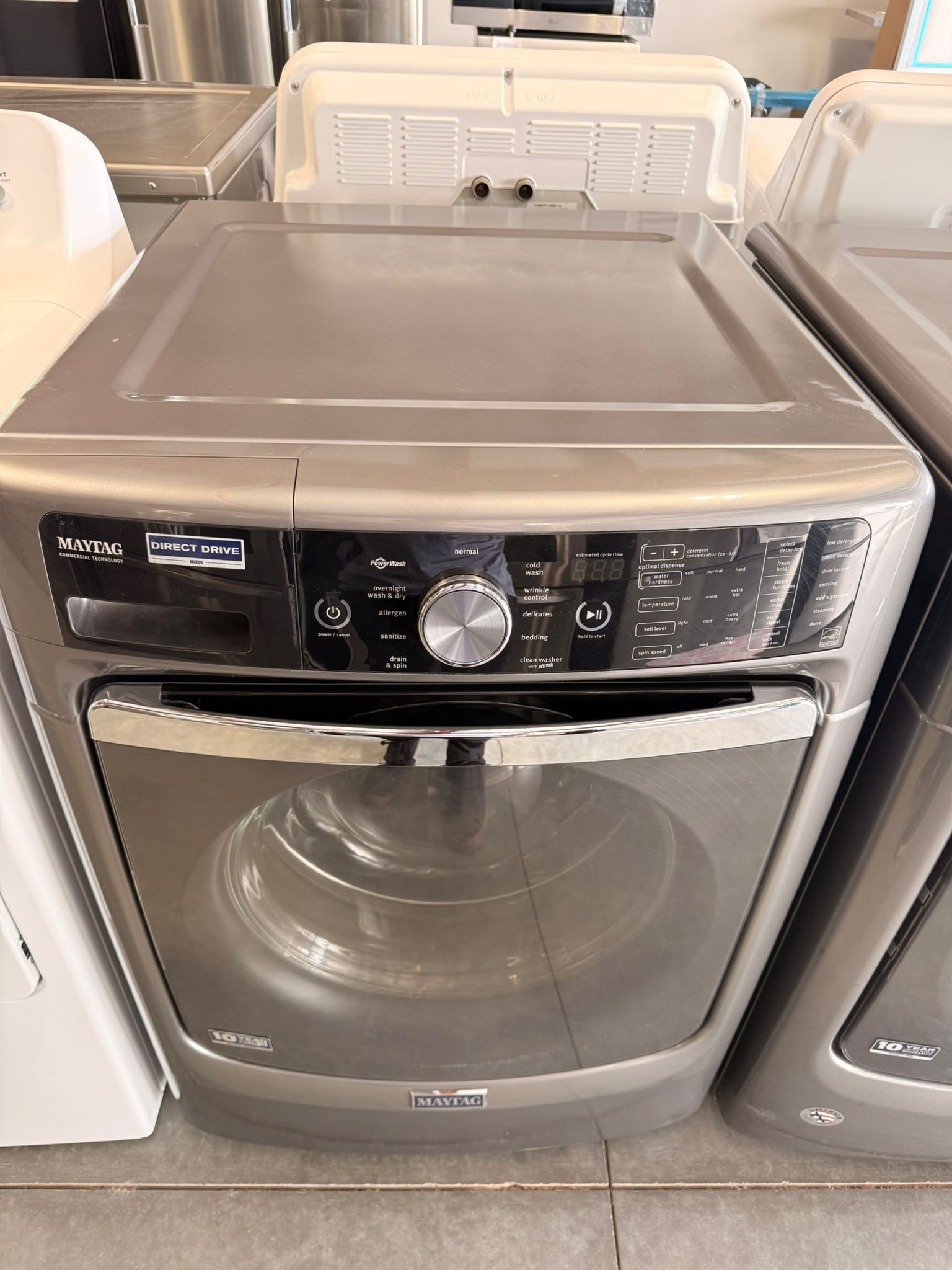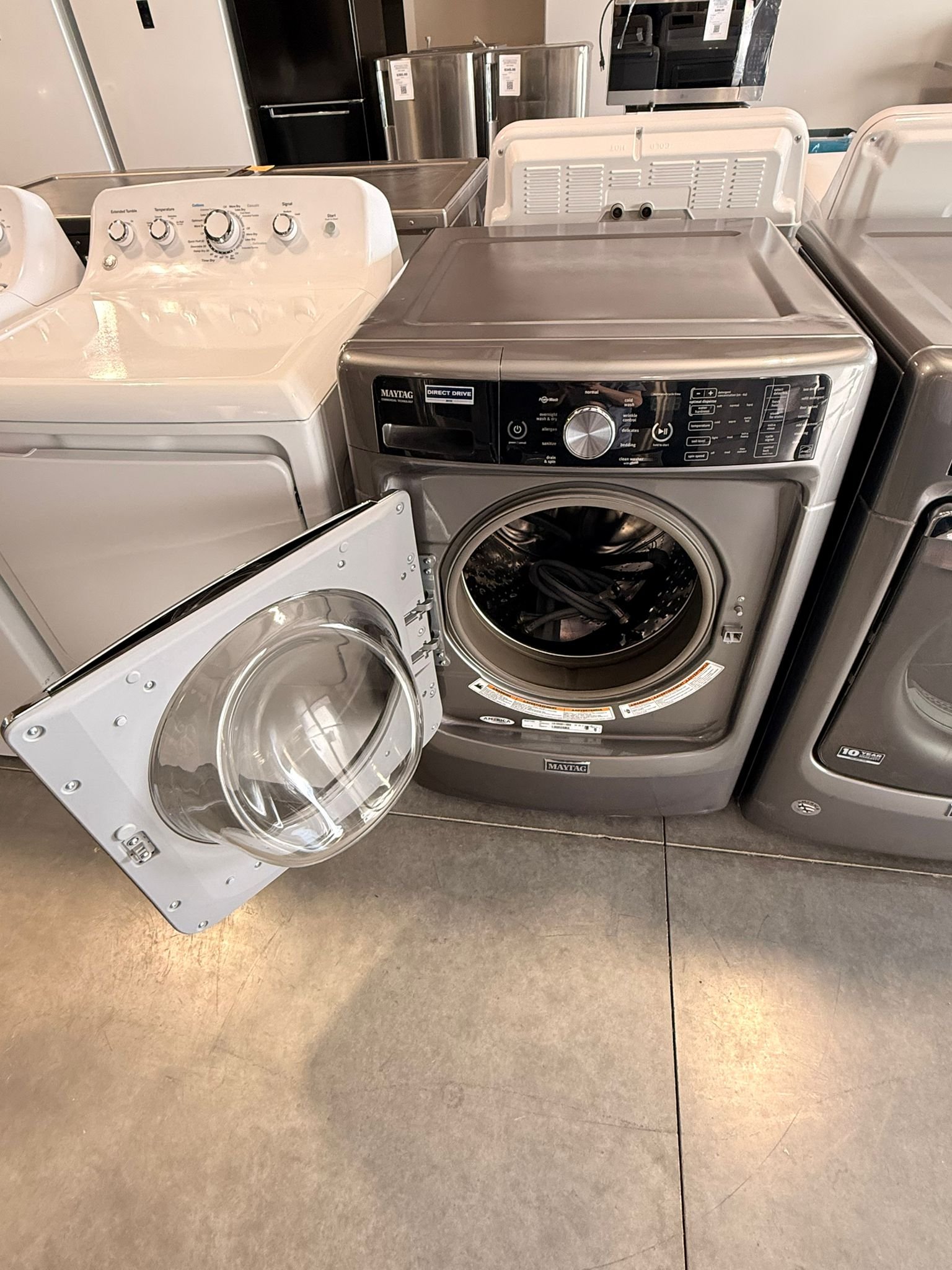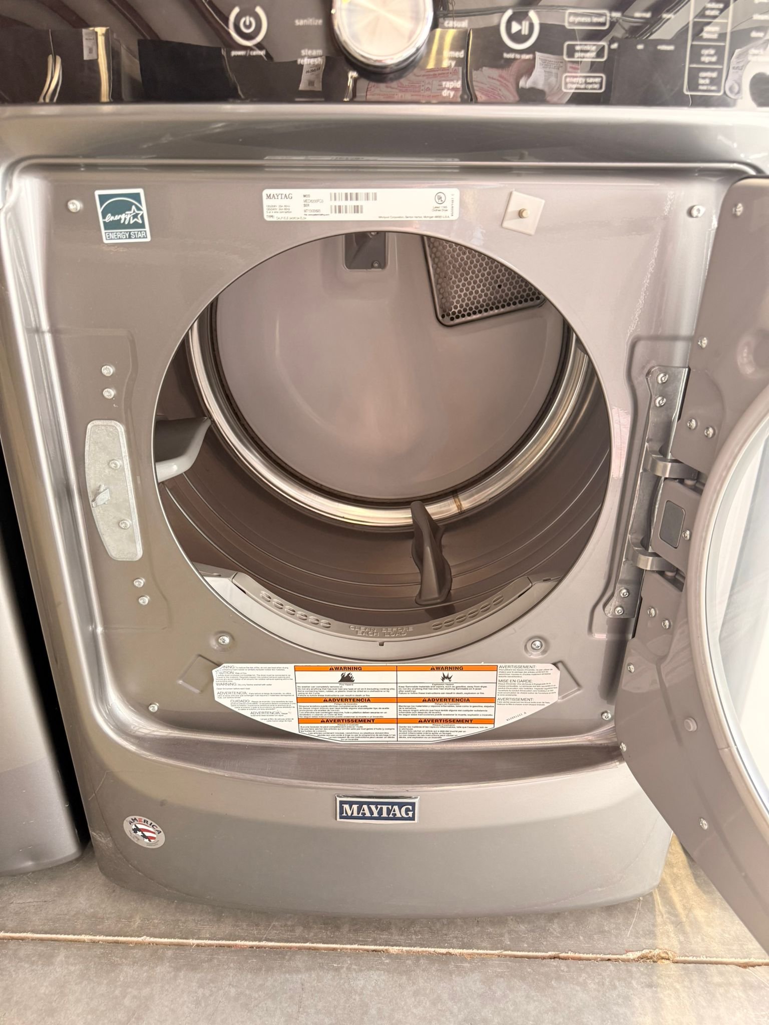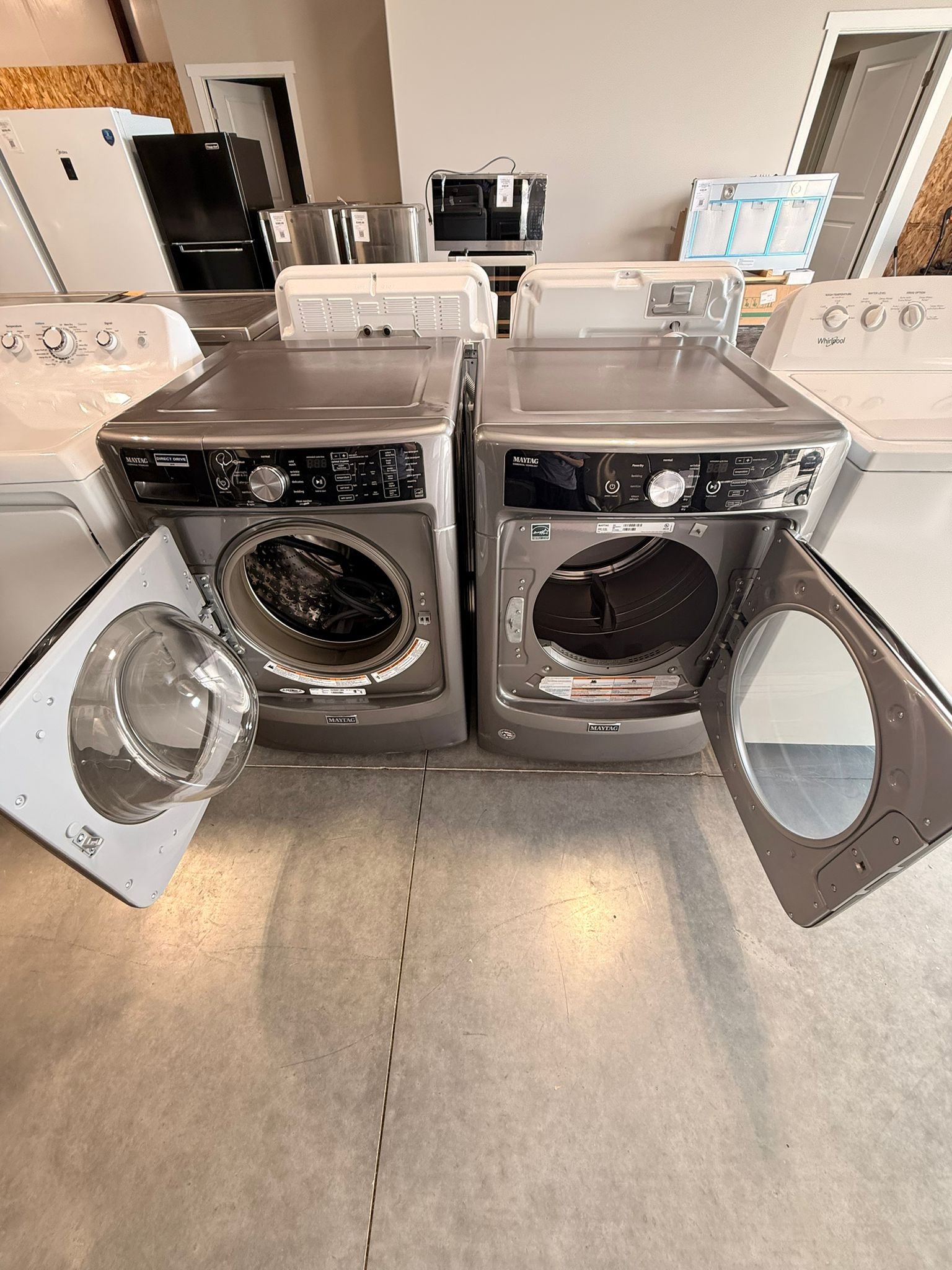 Maytag 4.6 cu. ft. Front-Load Washer and 7.4 cu. ft. Electric Dryer Stackable Set in Metallic Slate!